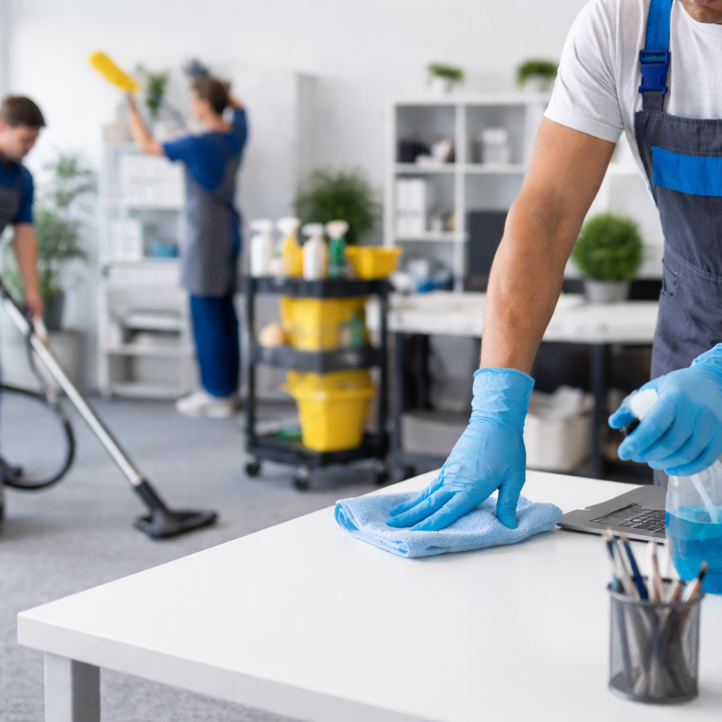 Tägliche oder intervallbasierte Pflege aller Arbeitsbereiche. Entfernung von Staub, Schmutz und Abfällen. Reinigung von Arbeitsplätzen, Besprechungsräumen und technischen Flächen ohne Unterbrechung des Betriebs.