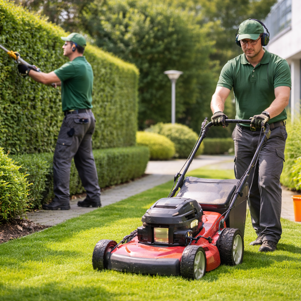 Pflege von Rasenflächen, Hecken, Sträuchern und Beeten.